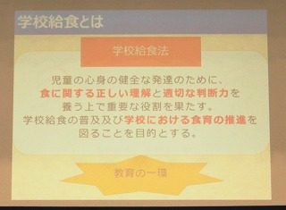 今回の講習会、色々なお話しをしていただいて、とても勉強になりました。学校給食の大切さを再確認することができ、家庭でも、学校給食における栄養教育活動を参考に日常に取り入れたいと思います。