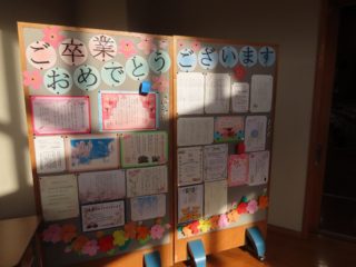 その先には、学童の子どもたちが手作りの『卒業おめでとう』のプラカードを持ってお出迎えをしてくれるという、うれしいサプライズがありました。