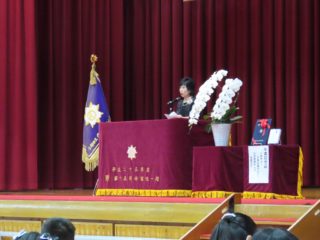 校長式辞では、「PTA、親父の会、地域の皆さんのふるさとにかける熱い思いの上に、今の日々の生活があることを忘れず、『ふるさと のぞみ』への誇りをもって進んでください」という、心温まる餞の言葉をいただきました。