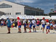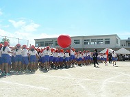 1年生から6年生みんなで力を合わせ、大玉を運びました。