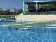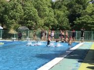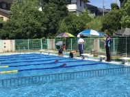 5年生対象の雨のため延期されていた水泳記録会が、晴天のもと行われました。