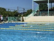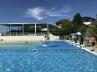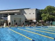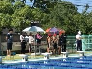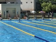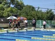 5年生対象の雨のため延期されていた水泳記録会が、晴天のもと行われました。