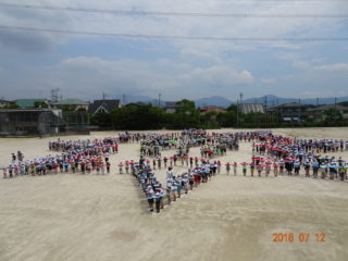 5月12日 開校20周年記念の航空写真撮影がありました。 暑い中、子...