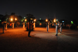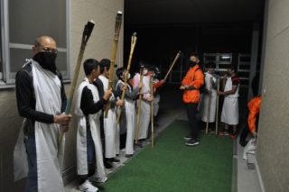 子どもたちはキャーキャーワーワーと大声で叫び、恐がりながらも夜の学校を楽しんでいました。