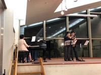 ピアノ/バイオリン/サックスによる3人演奏【ハナミズキ】と、会長によるソロ演奏が行われ、美しい音色に魅了されました。